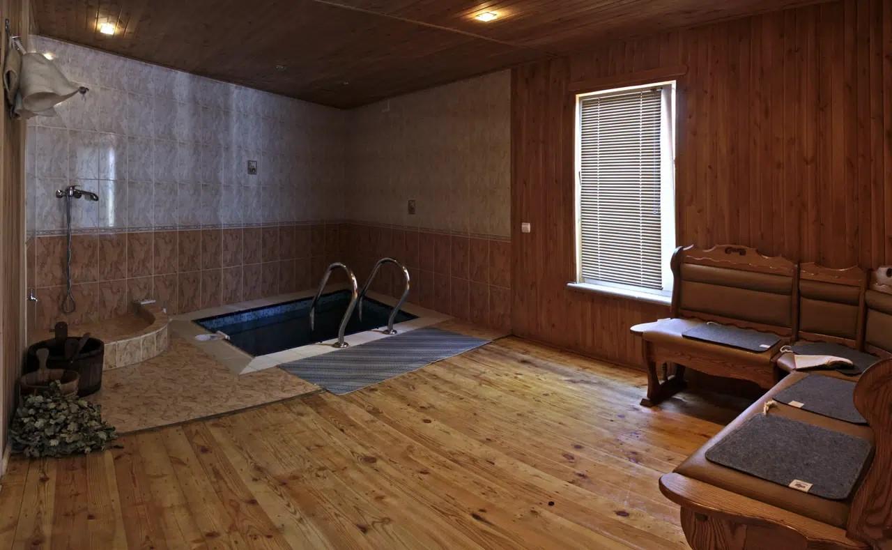 Настоящая русская баня с комнатой отдыха и купелью рассчитана на 2-4 человека. Здесь Вы можете попариться с березовыми веничками, понырять в ледяную купель, попить чайку из крымских трав с медом. Изюминка - полок в нашей парилке выполнен из доски Абаша, которая принимает температуру тела не обжигая. В стоимость включено пользование баней до 2 часов для компании до 4 человек, веники, травяной чай с медом, простыни.