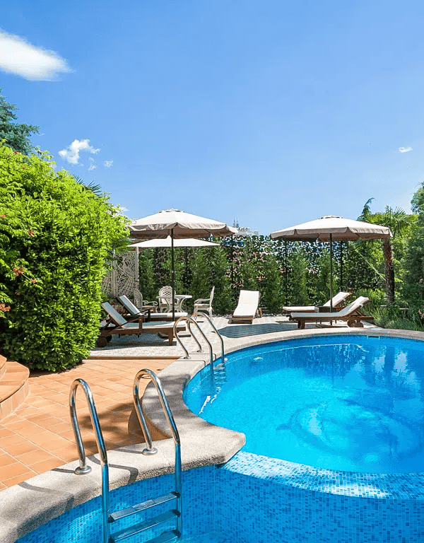 На территории усадьбы располагается 2 бассейна, рядом с каждым коттеджем. Также у бассейна к Вашим услугам шезлонги, зонтики. Пользование бассейном включено в стоимость.